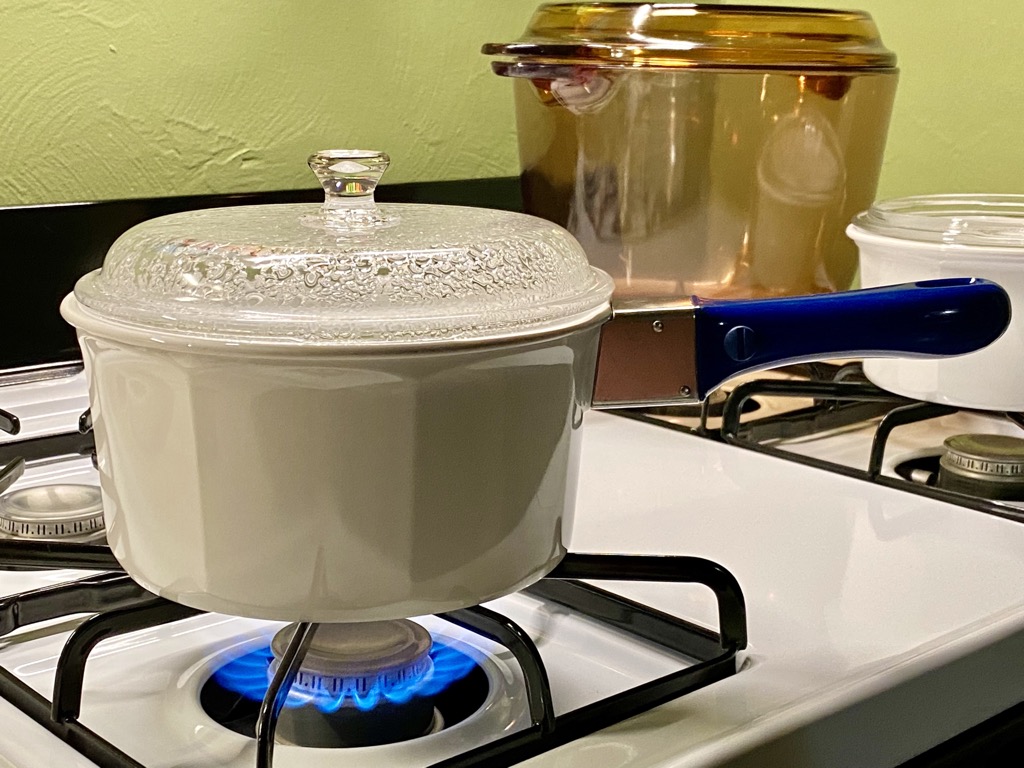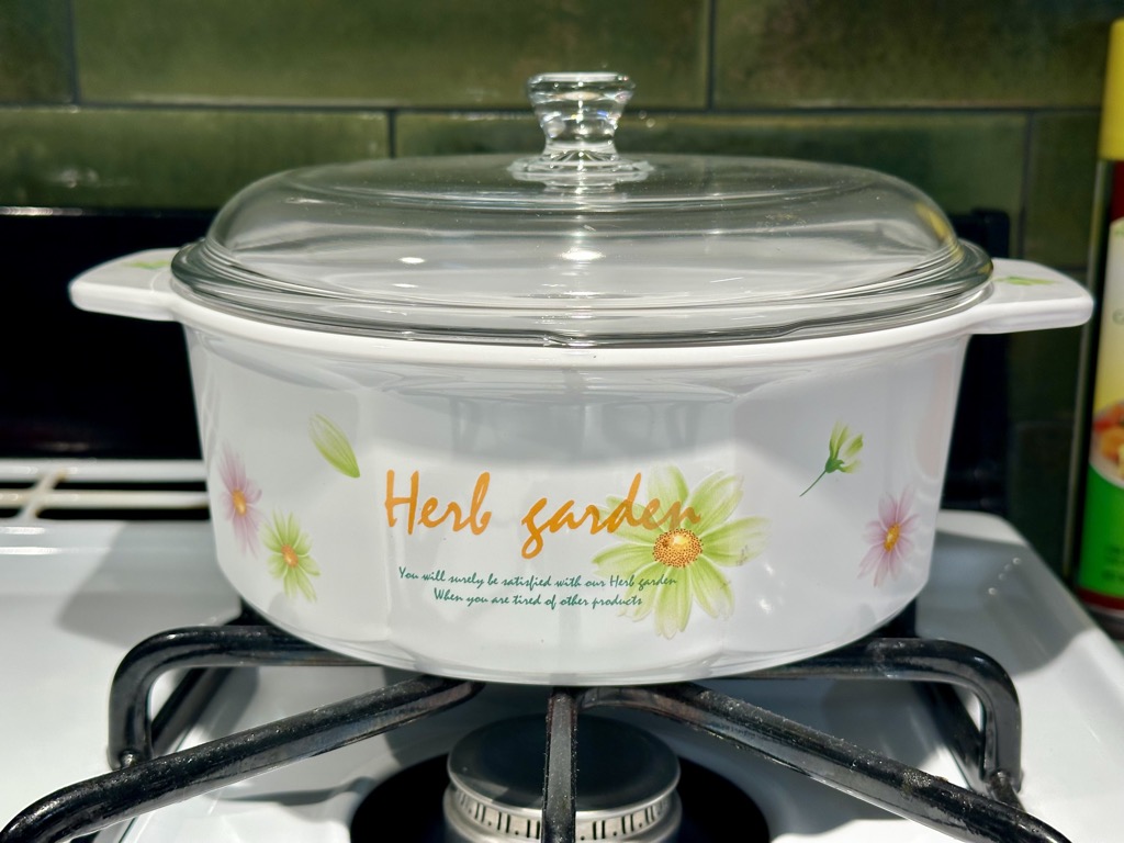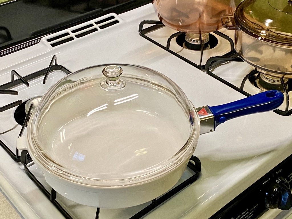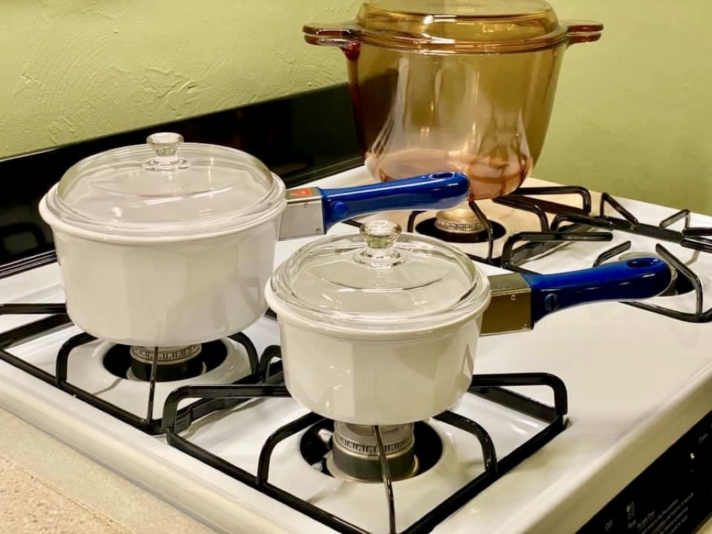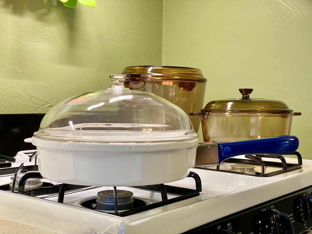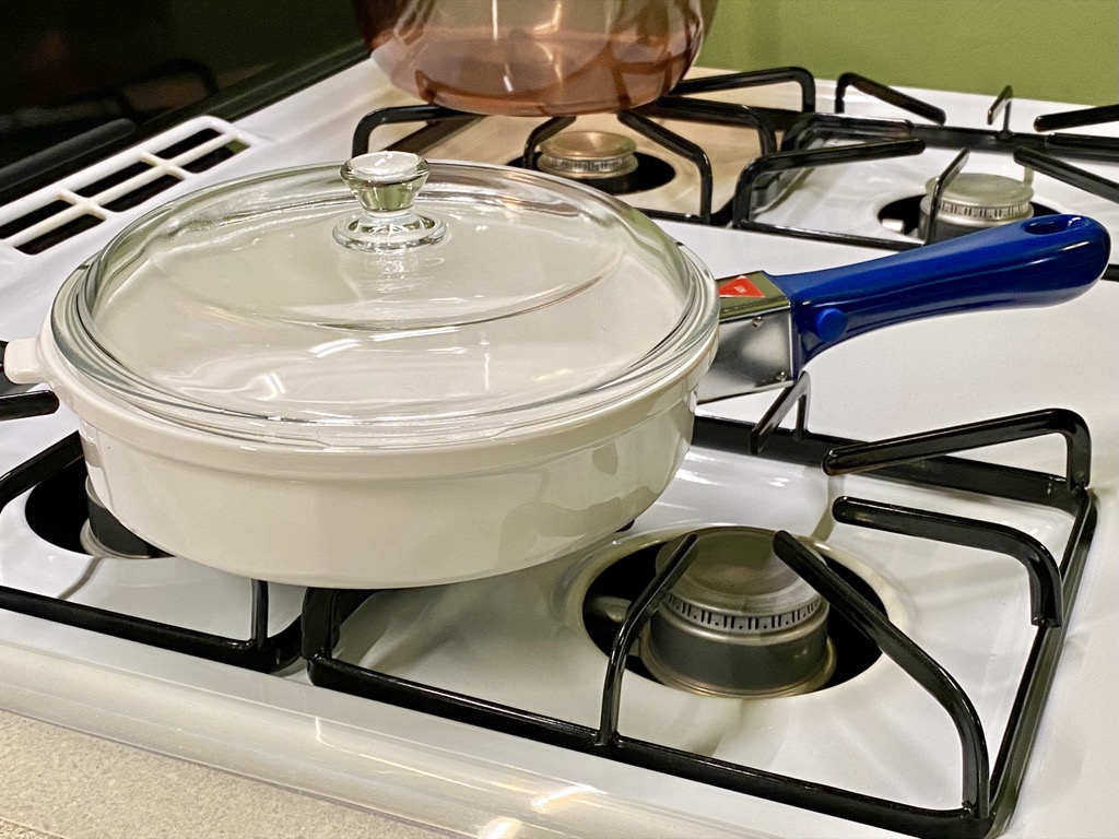 Select white pieces were rebadged as "Nouveau" cookware and distributed by Princess House in the 1990s-2000s. In 2010-2011 both white and amber casseroles were distributed under Corning Ware and Visions brands, respectively.