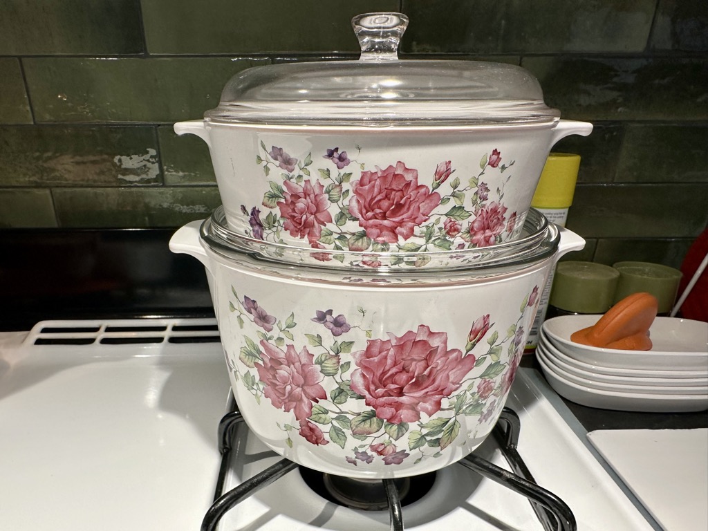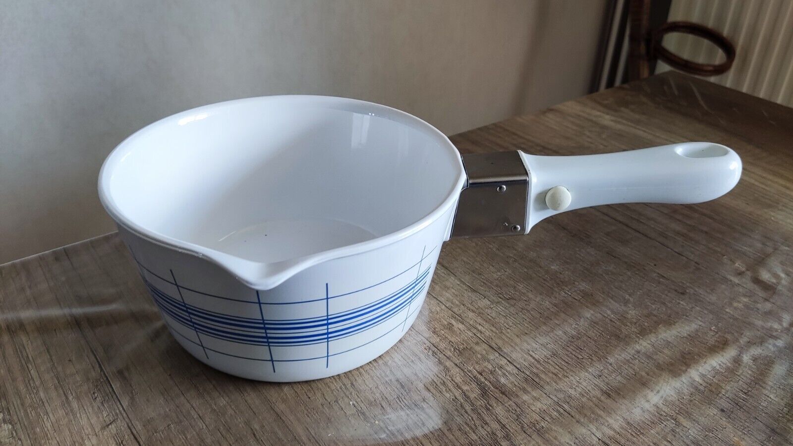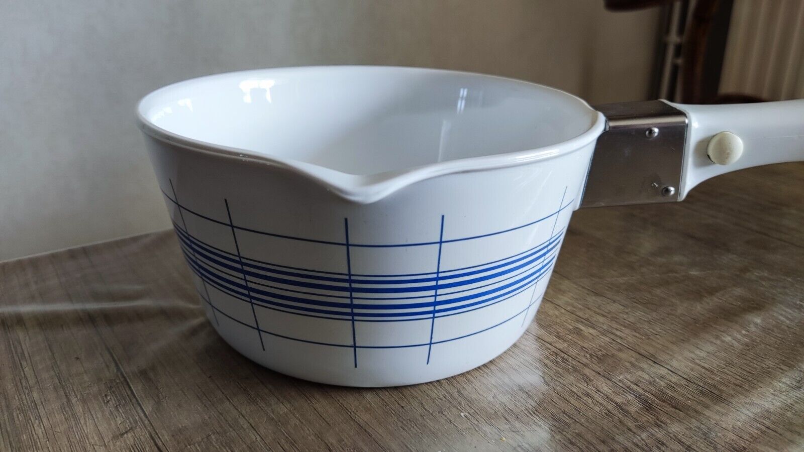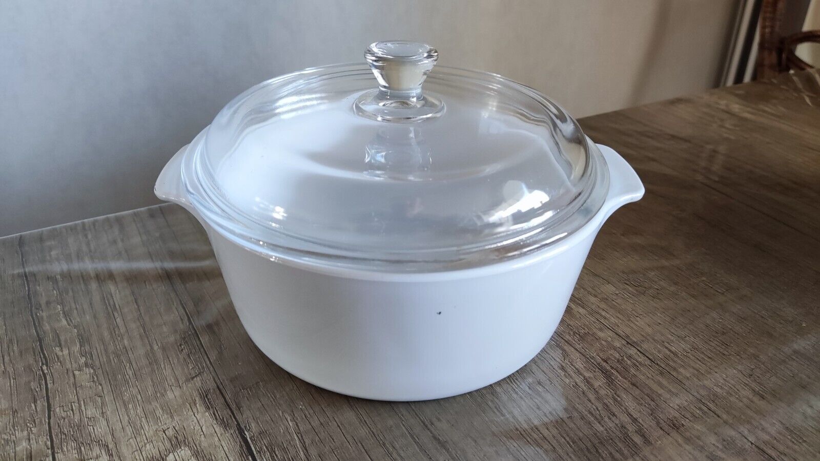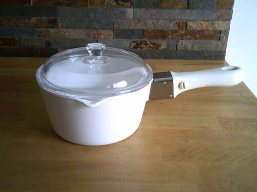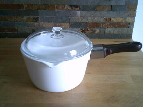 Available beginning in the 1990s, the Vitroflam brand was launched to offer these casseroles, baking dishes, and saucepans with smooth-sided bodies. Again, both amber (Amberline) and white (Vitroline) versions were available.
