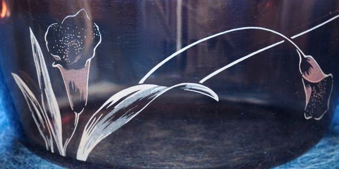 Released circa 1988, VISIONS DECO was apparently sold in the USA sporting at least two patterns. At this point in time, only decorated saucepans have been found. It's unknown whether any decorated cook pots or skillets were produced for this range.