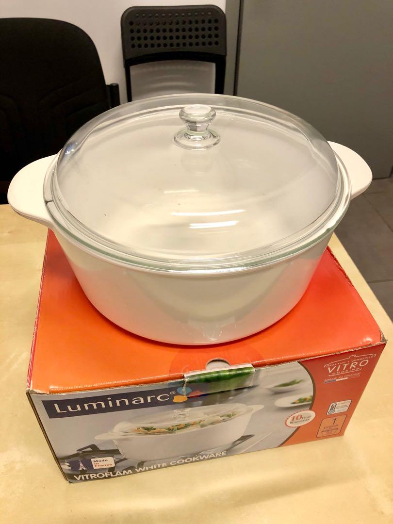 Around 2004, ARC's casseroles were subtly redesigned with the most noticeable difference being rounded handles. The "Vitroflam" name still appears on boxes in some regions but most are sold under the Luminarc brand and feature a "Vitro" identifier. ARC maintained Amberline and Vitroline versions. Vitroflam-style white saucepans with pour spouts and detachable handles continued to be produced (the handle would be revised in the 2010s) as did the Vitroflam style baking dishes.