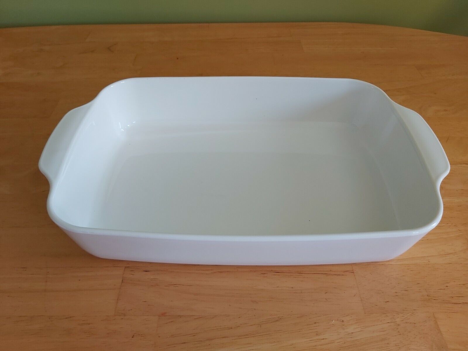 1.6L (27cm / 10.5") Tart (?), 1.8L (30x18cm / 11.75x7") & 2.8L (35x22cm / 13.75x8.75") Rectangle, 2.3L (32x22cm / 12.5x8.75") Oval, 3.5L Covered Roaster